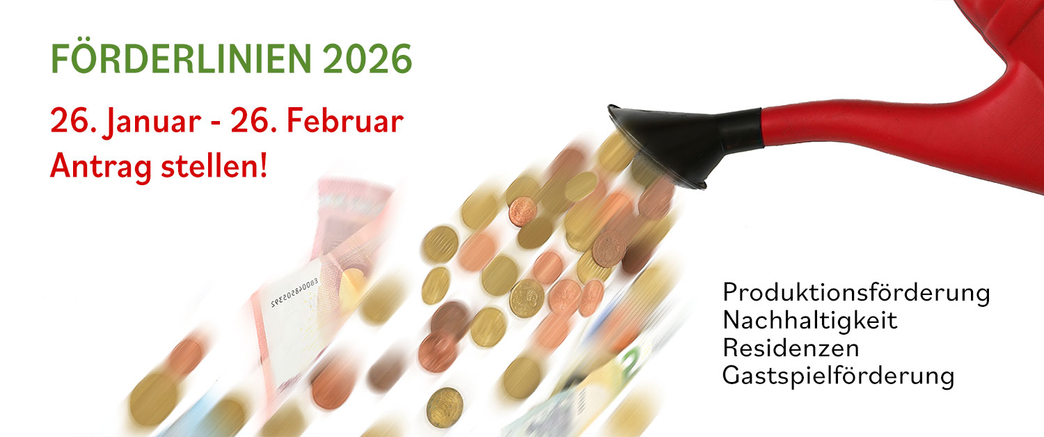 Vier Förderlinien 2026: Produktionen, Nachhaltigkeit, Residenzen und Gastspiele Anträge: 26. 01. – 26. 02. 2026